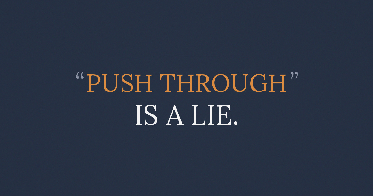 Tired? Push through. Anxious? Push through. Burned out? Push through. Body screaming at you to stop? Push. Through.